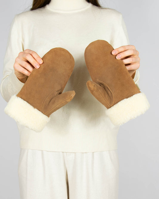 Brązowe skórzane rękawiczki z wełnianym ociepleniem SNUGG