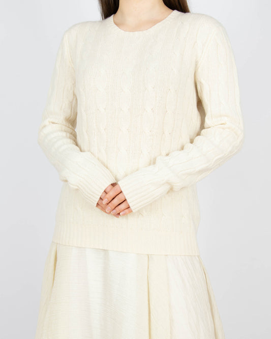 Śmietankowy kaszmirowy sweter warkoczowy Ralph Lauren - L