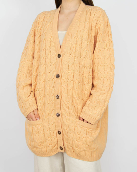 Brzoskwiniowy gruby kaszmirowy kardigan LUCIANA GREGORAT - XL