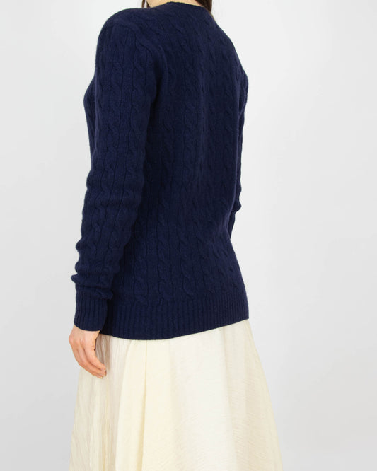 Granatowy (wełna + kaszmir) sweter warkoczowy Ralph Lauren - S