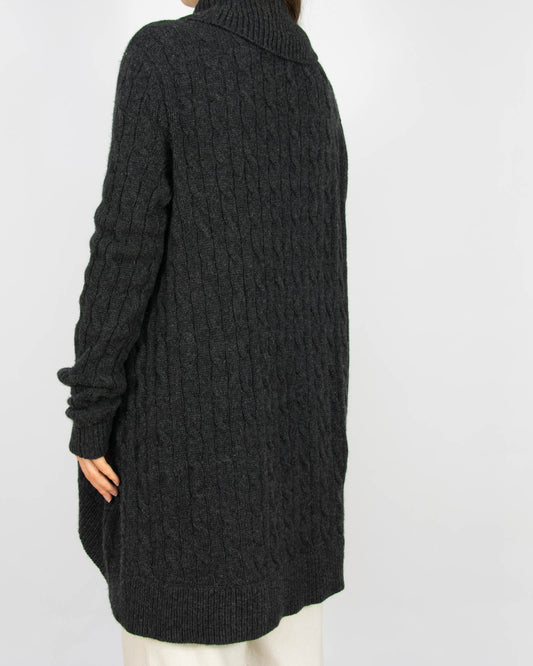Ciemnoszary (wełna + kaszmir) kardigan z klamrą Ralph Lauren - L