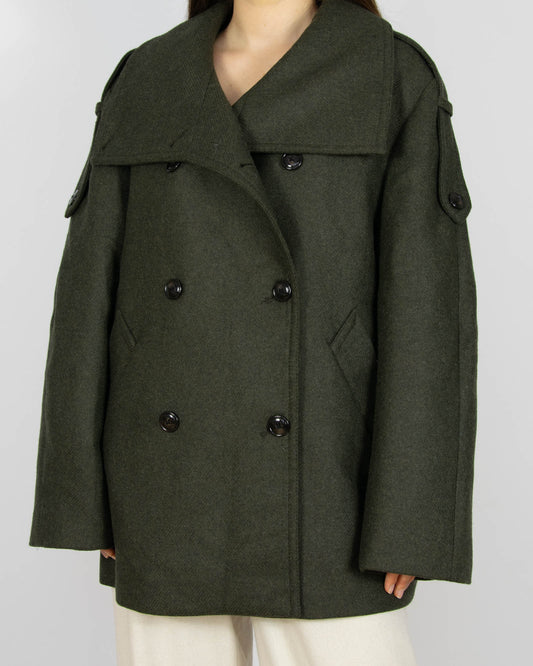 Ciemnozielony wełniany płaszcz Mango (Nova Fides) - L