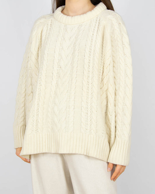 Śmietankowy wełniany sweter warkoczowy ARNIE SAYS - S/M