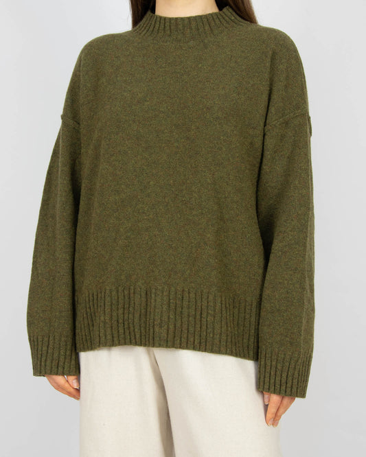 Oliwkowy khaki (wełna jagnięca) sweter WOODLING - XL