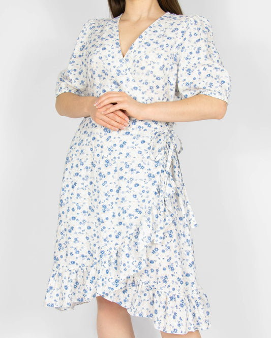 Biała lniana sukienka w niebieskie kwiaty Marie Philippe - M