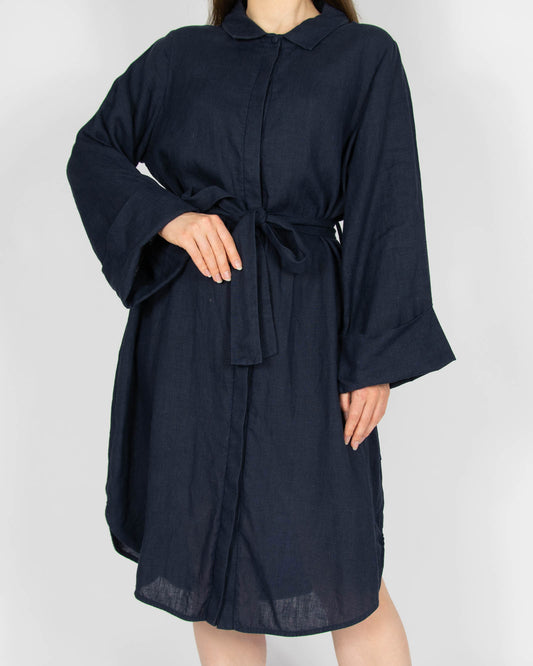 Granatowa lniana wiązana sukienka Ella & Il - XL