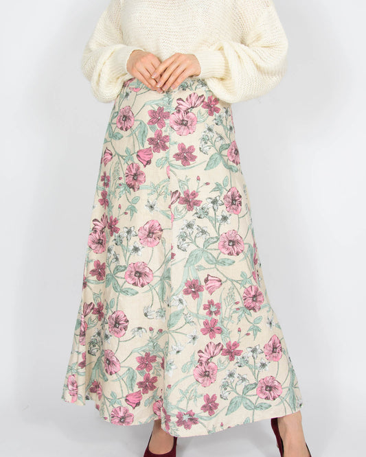 Beżowa lniana spódnica w kwiaty Laura Ashley - S/M