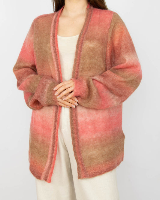 Różowy gradientowy (kid moher + merino) kardigan PBO - XL
