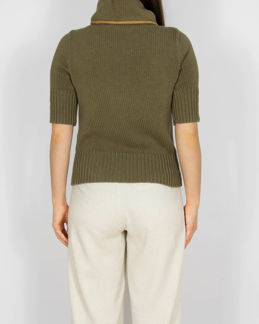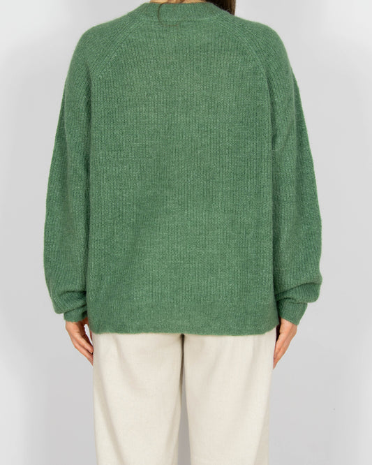 Zielony khaki wełniany (wełna i alpaka) sweter Soaked - M