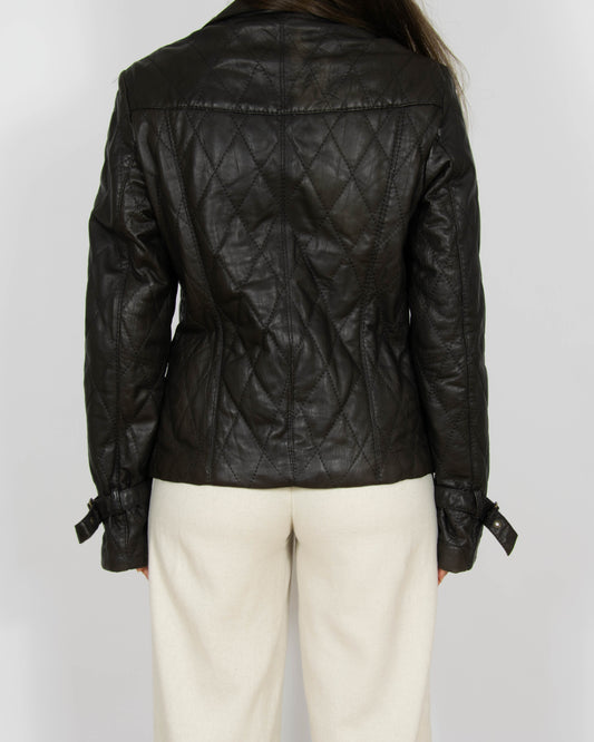 Brązowa skórzana (skóra jagnięca) pikowana kurtka Milestone - L