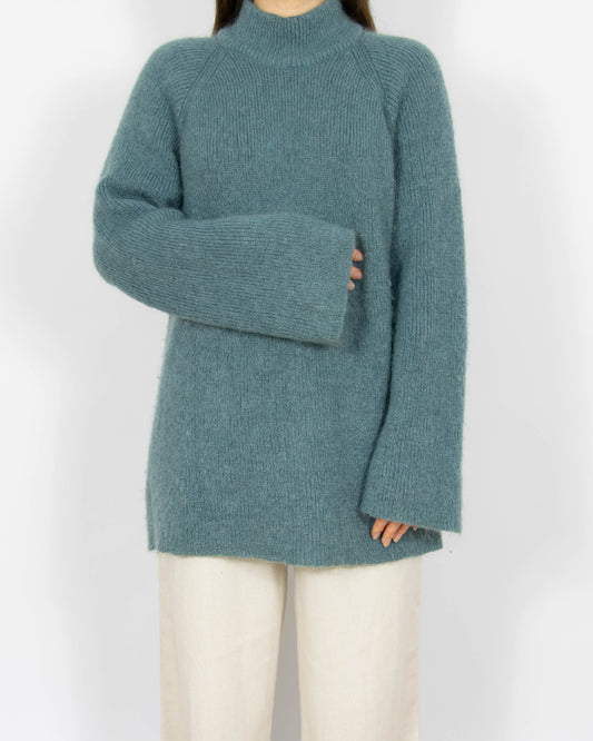 Morski wełniany (Kid Moher + merino) sweter IBEN OSLO - L