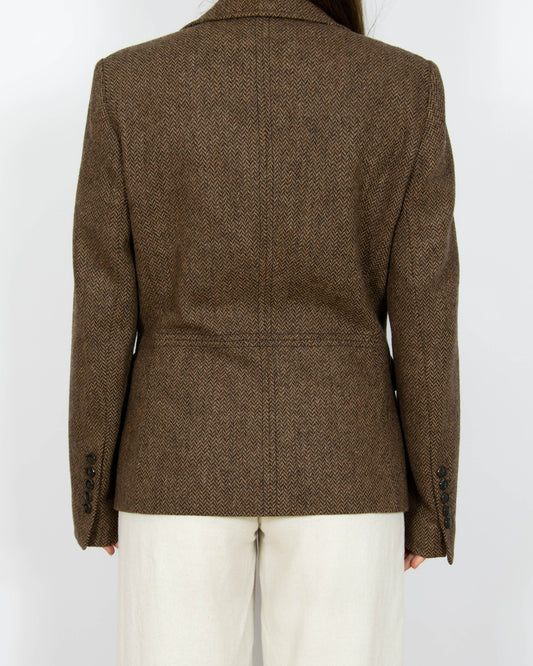 Brązowa wełniana marynarka w jodełkę Christian Berg - M/L