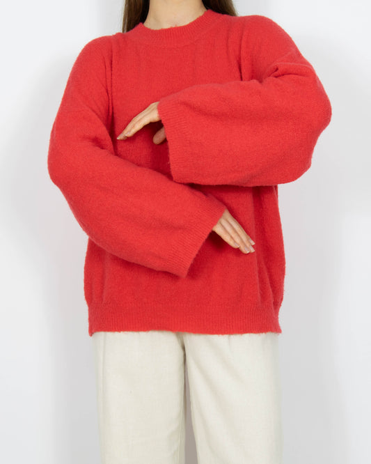 Malinowy wełniany (wełna + moher) sweter MSCH Copenhagen - S/M