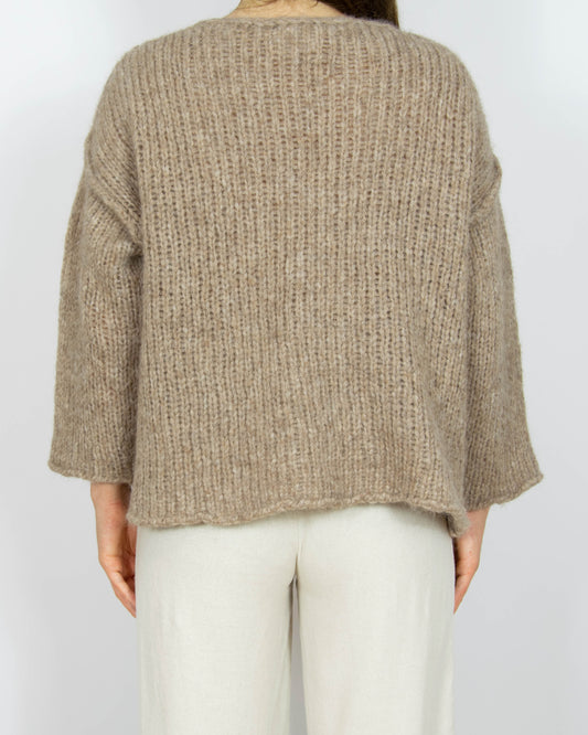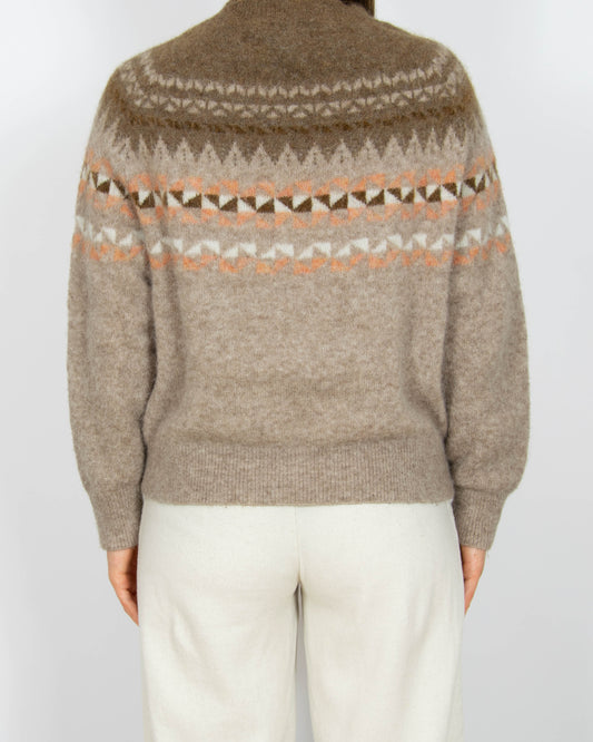 Brązowo beżowy wełniany (alpaka + wełna) sweter norweski Ane Mone - S
