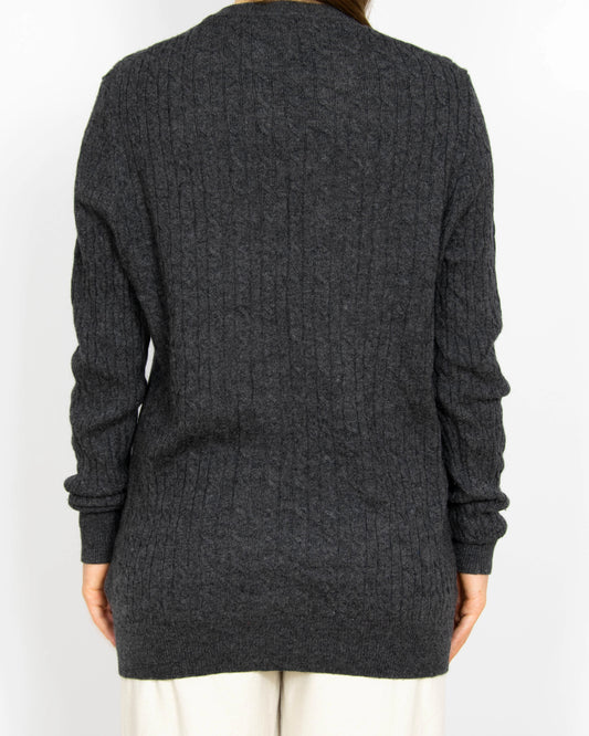 Szary warkoczowy wełniano kaszmirowy sweter Woolovers - L