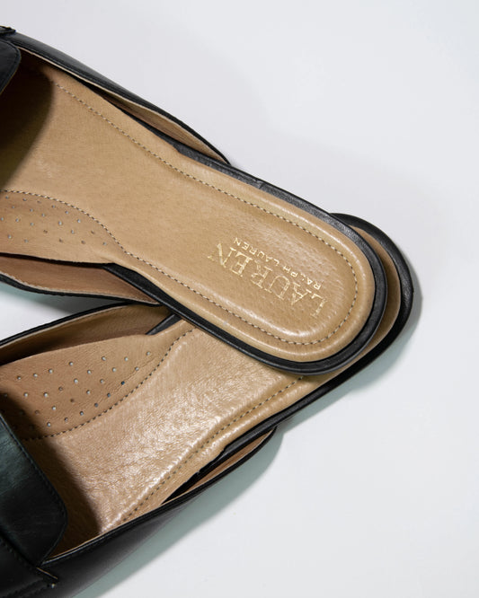 Czarne skórzane zabudowane klapki Ralph Lauren - 40 (25cm)