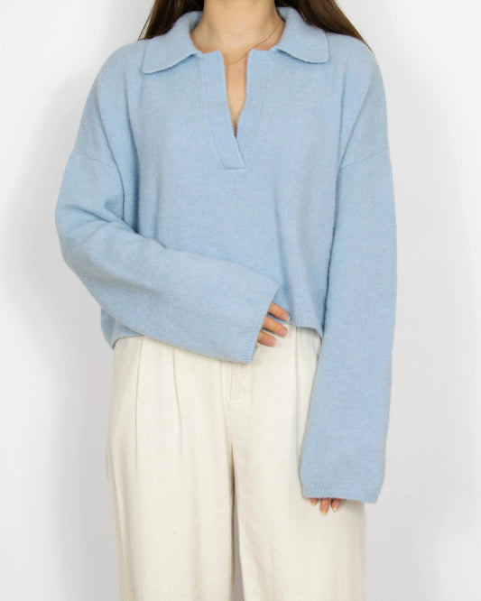 Błękitny wełniany (alpaka + merino) sweter CUSTOMMADE - S/M