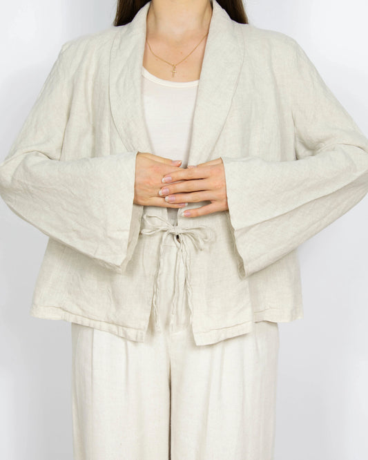 Beżowa lniana wiązana narzutka/żakiet Noa Noa - M