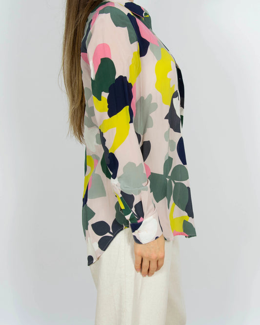 Kolorowa jedwabna koszula roślinny motyw Boden - S/M