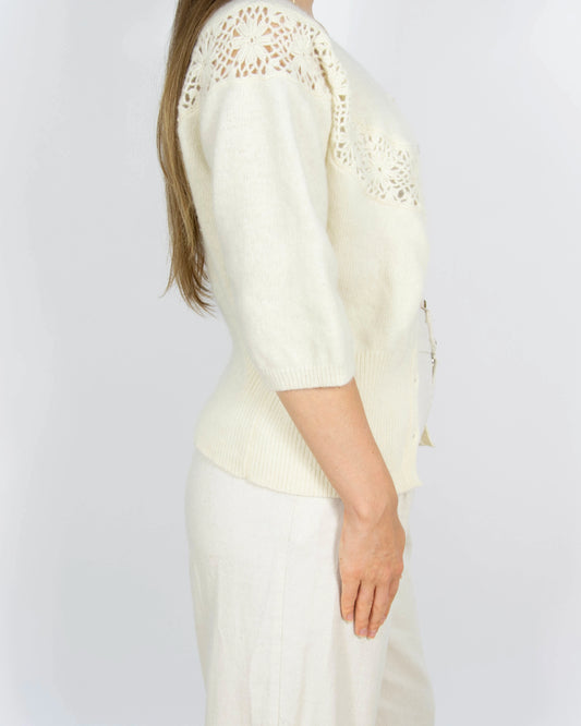 Kremowy ażurkowy wełniany kardigan z angorą Indiska - L/XL