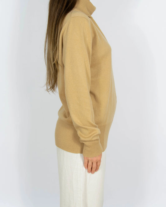 Beżowy jedwabno kaszmirowy sweter z golfem Design Uta Raasch - XL lub oversize
