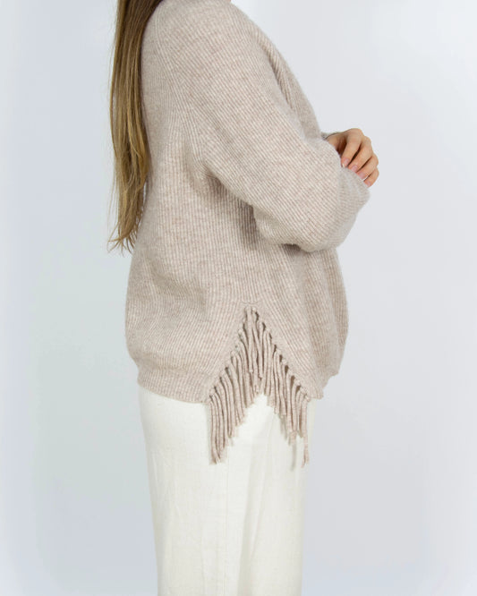 Beżowy wełniano kaszmirowy kardigan z frędzlami THOM by Thomas Rath