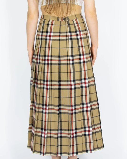 Beżowa szkocka wełniana plisowana spódnica w kratę Gibson & Lumgair - M