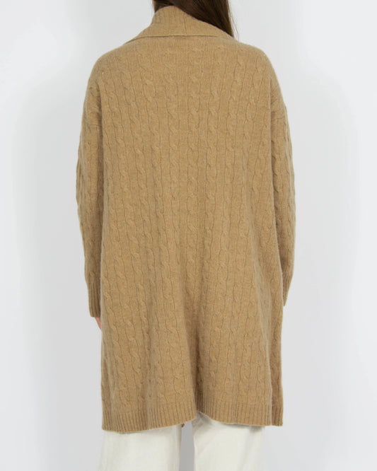 Beżowy wełniany długi kardigan cable knit z kaszmirem Ralph Lauren - M