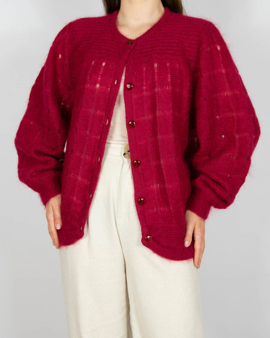 Bordowy moherowy (Super Kid Moher) kardigan Peter Hahn - L
