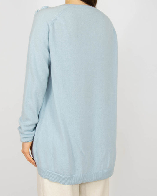 Jasnoniebieski kaszmirowy sweter z jedwabnym kwiatem RENA MARX - XL