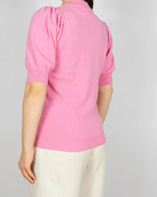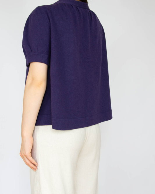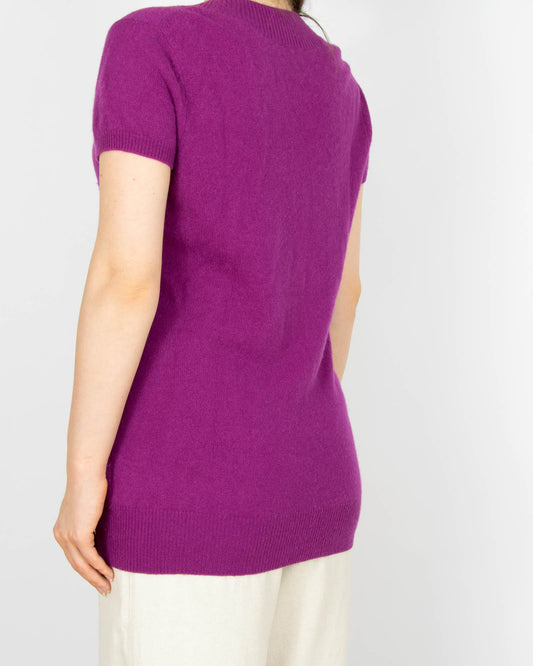 Fioletowy kaszmirowy sweter z krótkim rękawem - S