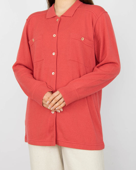 Czerwony kaszmirowy kardigan C&A - S