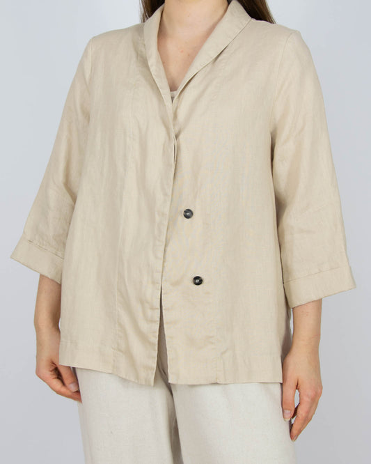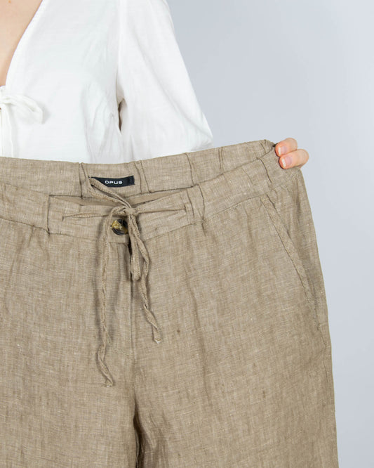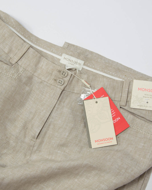 Nowe beżowe lniane spodnie z szeroką nogawką - L