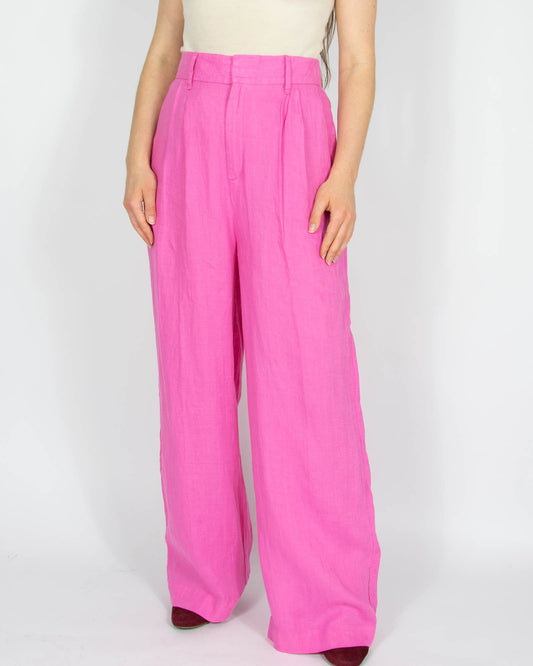 Różowe lniane spodnie z szeroką nogawką Gina Tricot Premium - M
