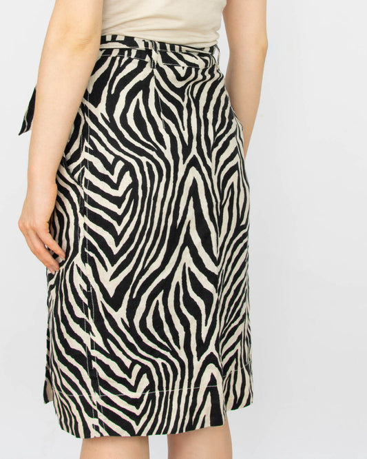 Kremowo czarna (zebra) lniana wiązana spódnica OUI - S