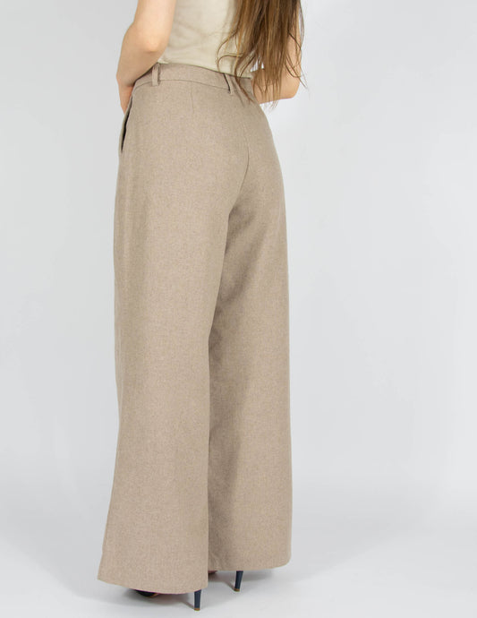Beżowe wełniane spodnie z szeroką nogawką ICHI - M