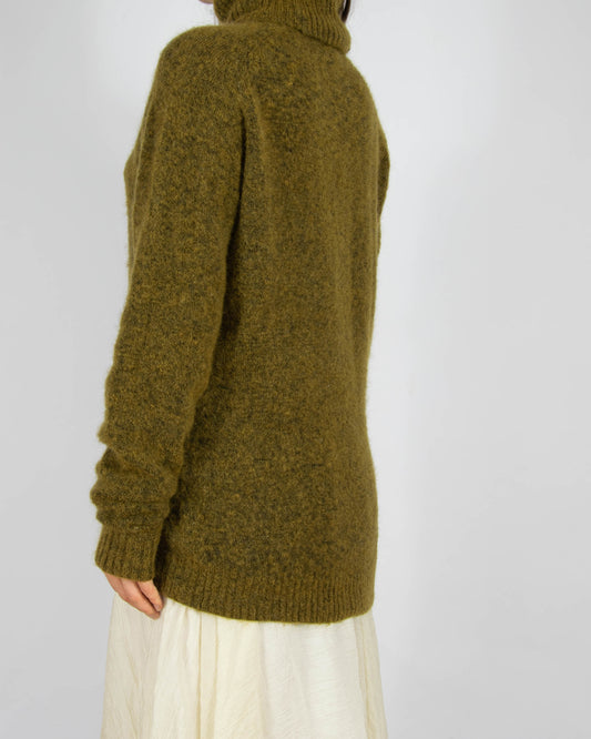 Brązowo zielony (moher + wełna) sweter z golfem GESTUZ - S
