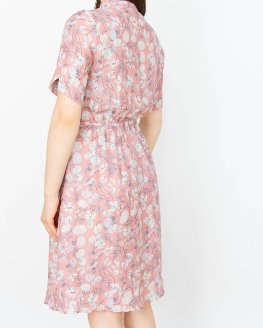 Pudrowa różowa jedwabna sukienka w kwiaty Baum und Pferdgarten - S