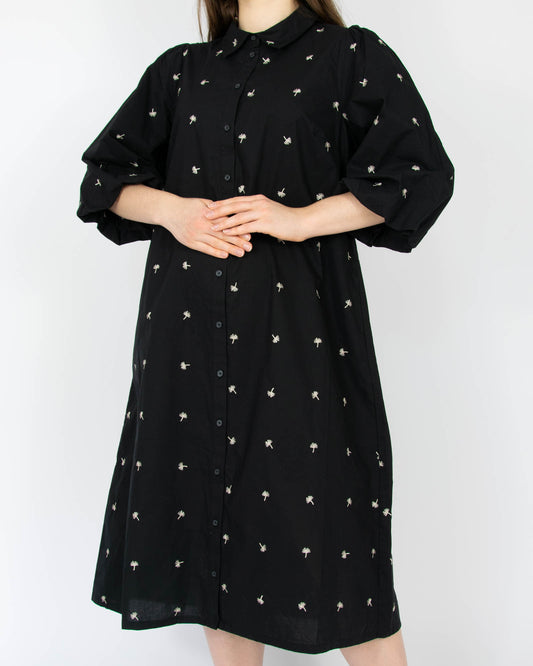 Czarna bawełniana (organic) sukienka koszulowa w haftowane dmuchawce - S