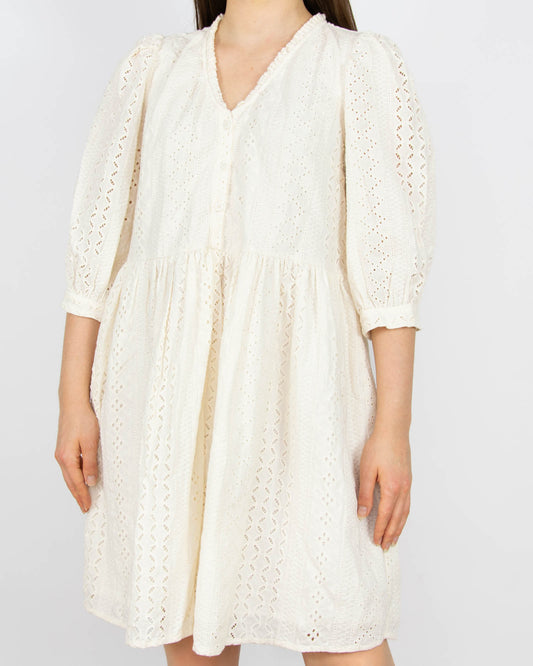 Kremowa bawełniana (organiczna) sukienka w kwiaty YAS - XL
