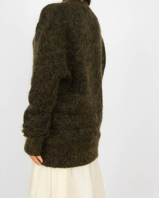 Zielono brązowy (moher + wełna) sweter Weekday - M