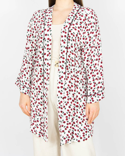 Biała wiskozowa narzutka kimono w wisienki Zizzi - M
