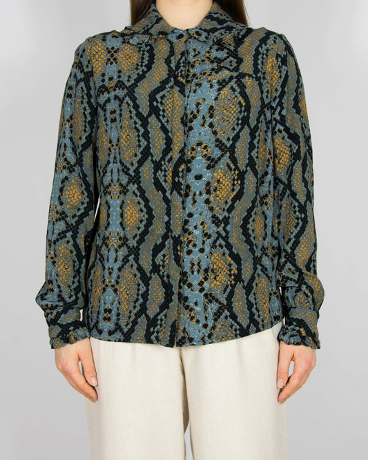 Niebiesko czarna wiskozowa koszula w wężowy print - S