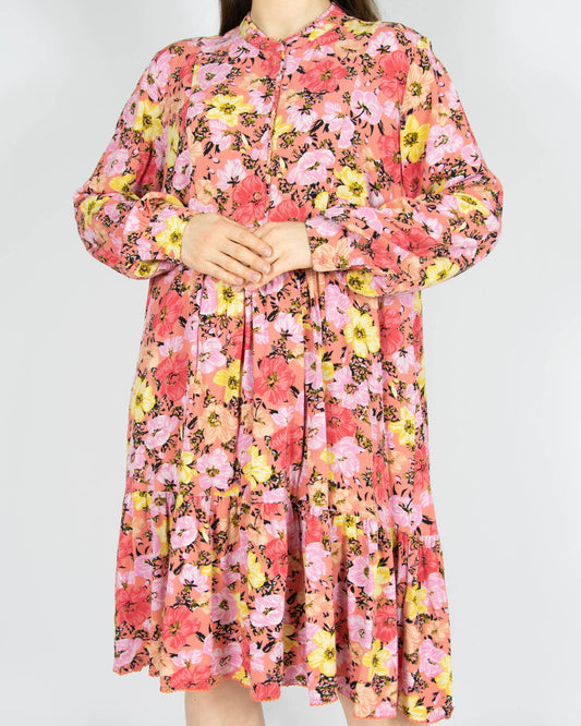 Różowa wiskozowa sukienka w kwiaty - XL