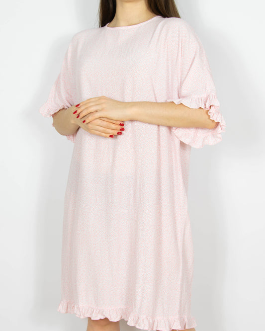Pastelowa różowa wiskozowa sukienka w białe kwiatki Boii Studios - S