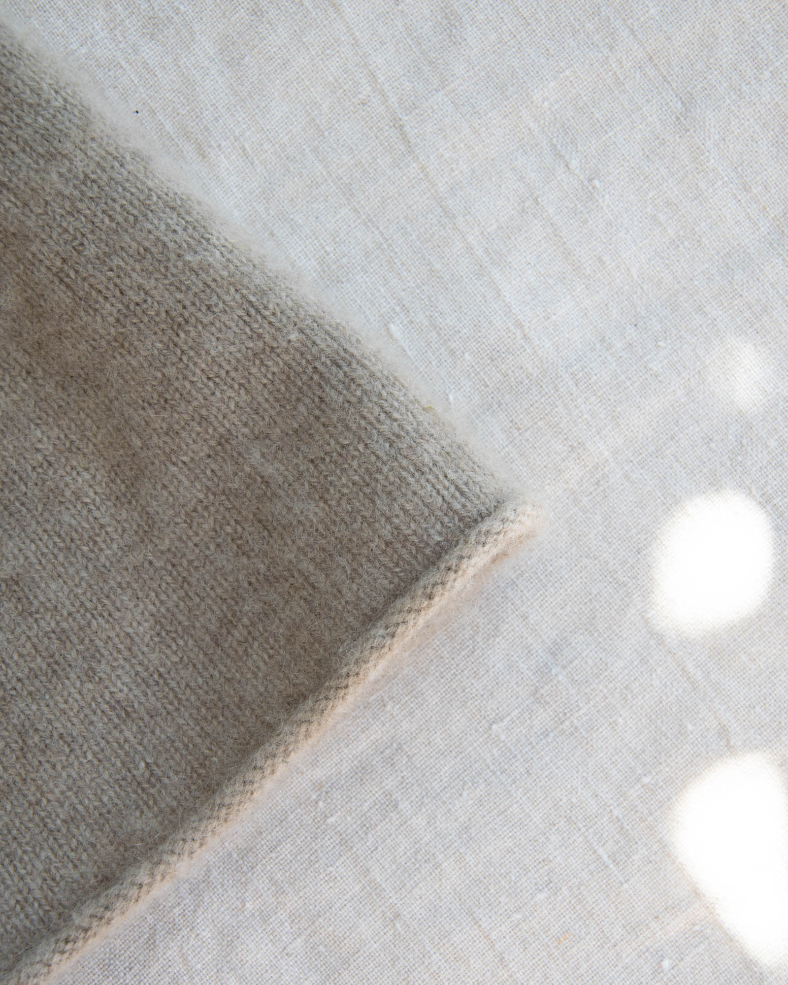 Beżowa kaszmirowa czapka luksusowej marki LISA YANG. Ceny kaszmirowych czapek na stronie marki wynoszą 130-150€ (550-640 zł).