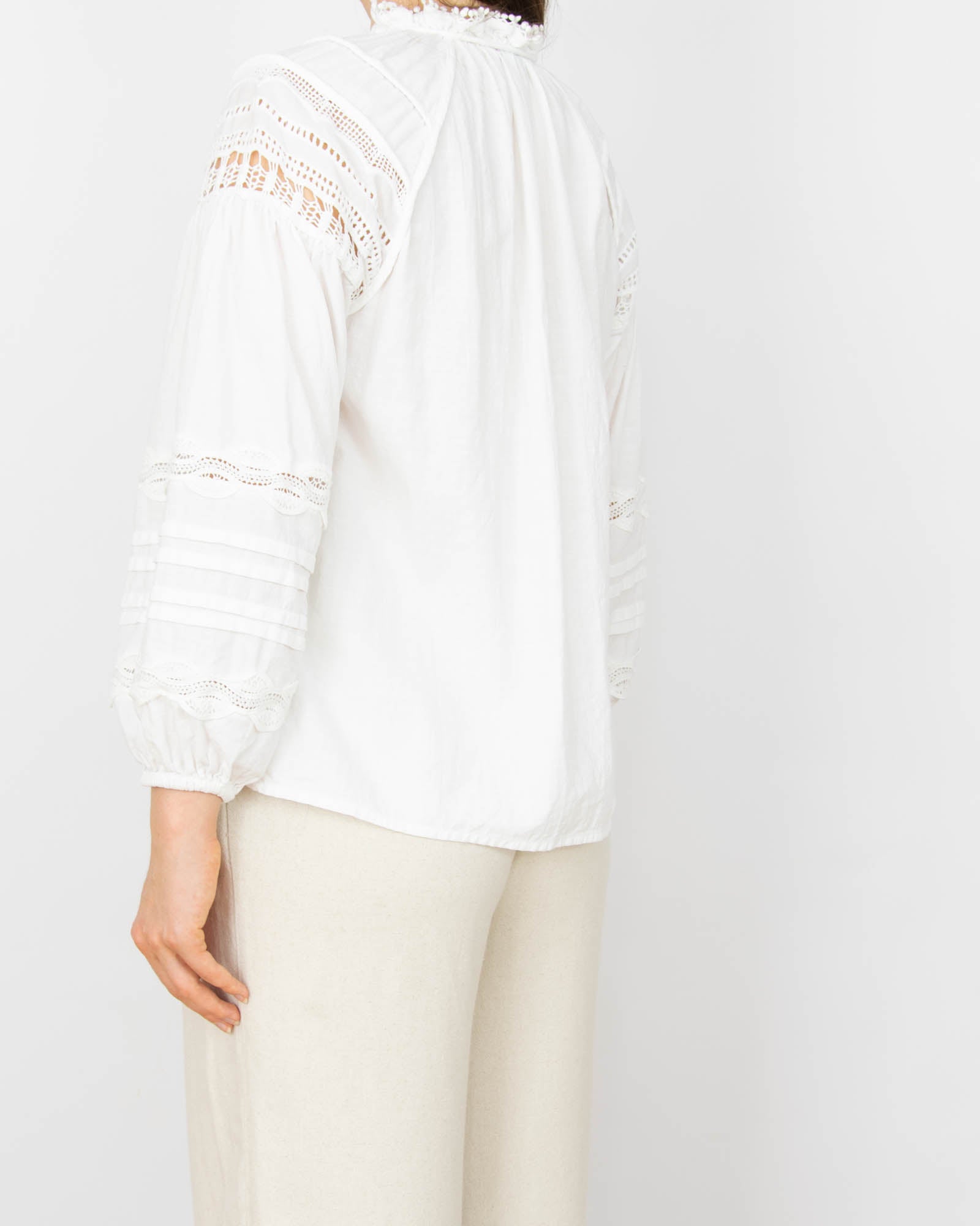 Biała bawełniana haftowana koszula francuskiej marki SUNCOO Paris.