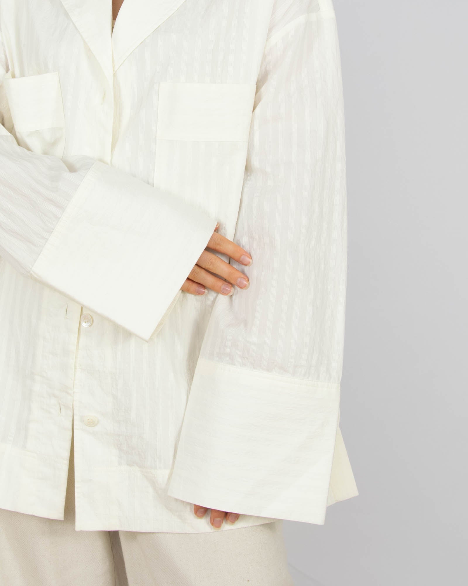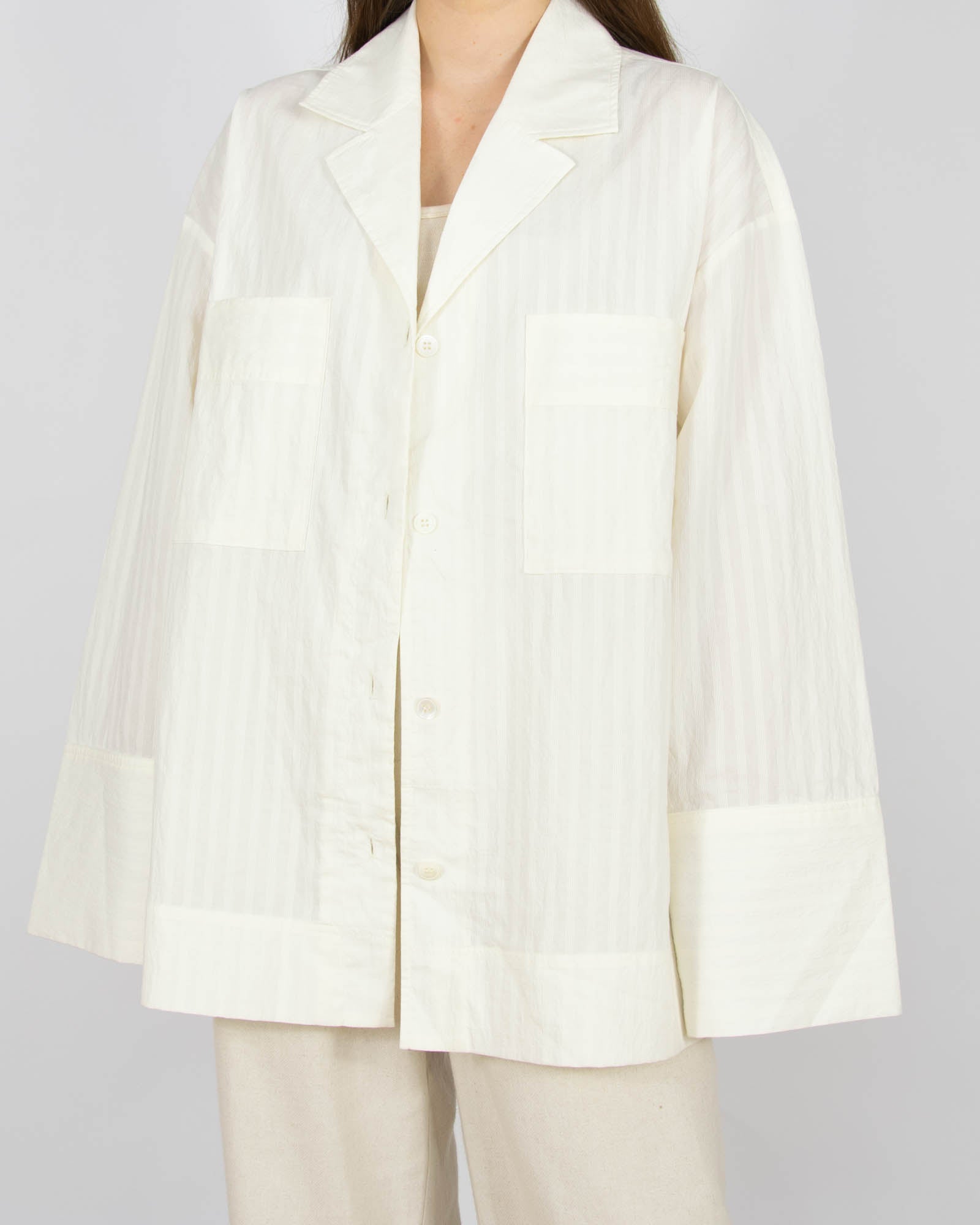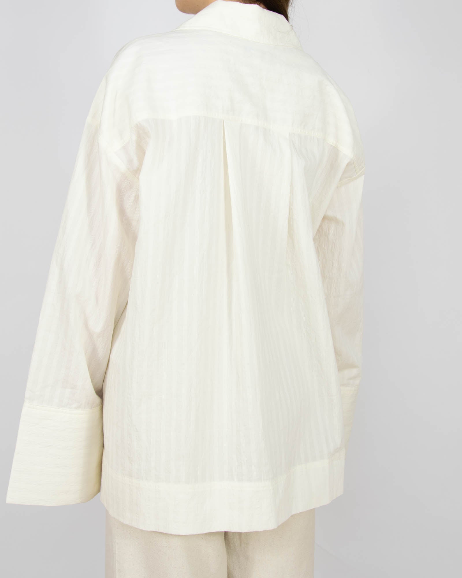 Biała bawełniana (organic) koszula luksusowej marki DAGMAR (House of Dagmar). Koszula o kroju oversize z szerokimi rękawami. Koszula w kolorze ciepłej bieli. Cena tej koszuli na stronie marki wynosiła 1330 zł.