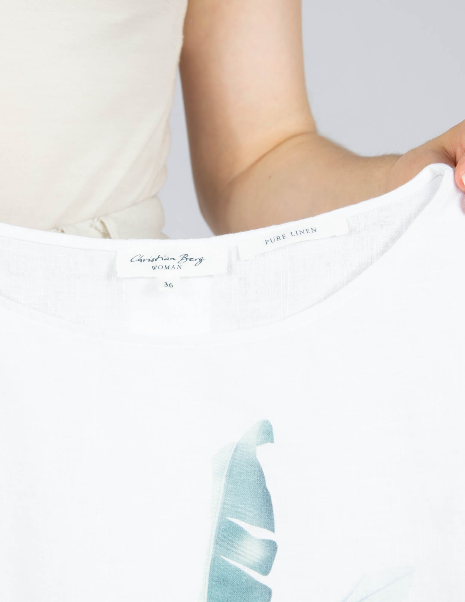 Biała lniana bluzka w motyw roślinny niemieckiej marki Christian Berg. Bluzka wykonana ze świetnej jakości lnu.
