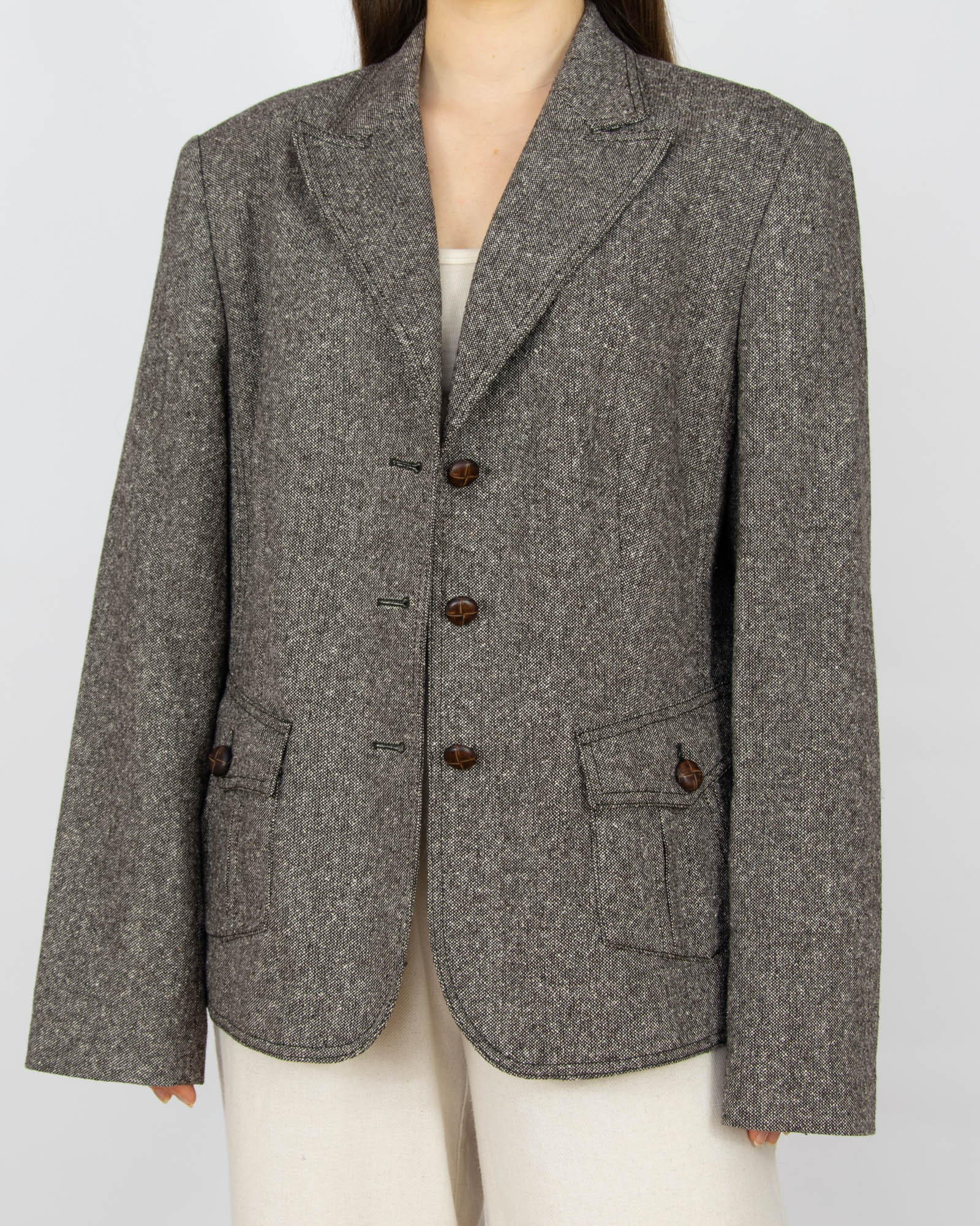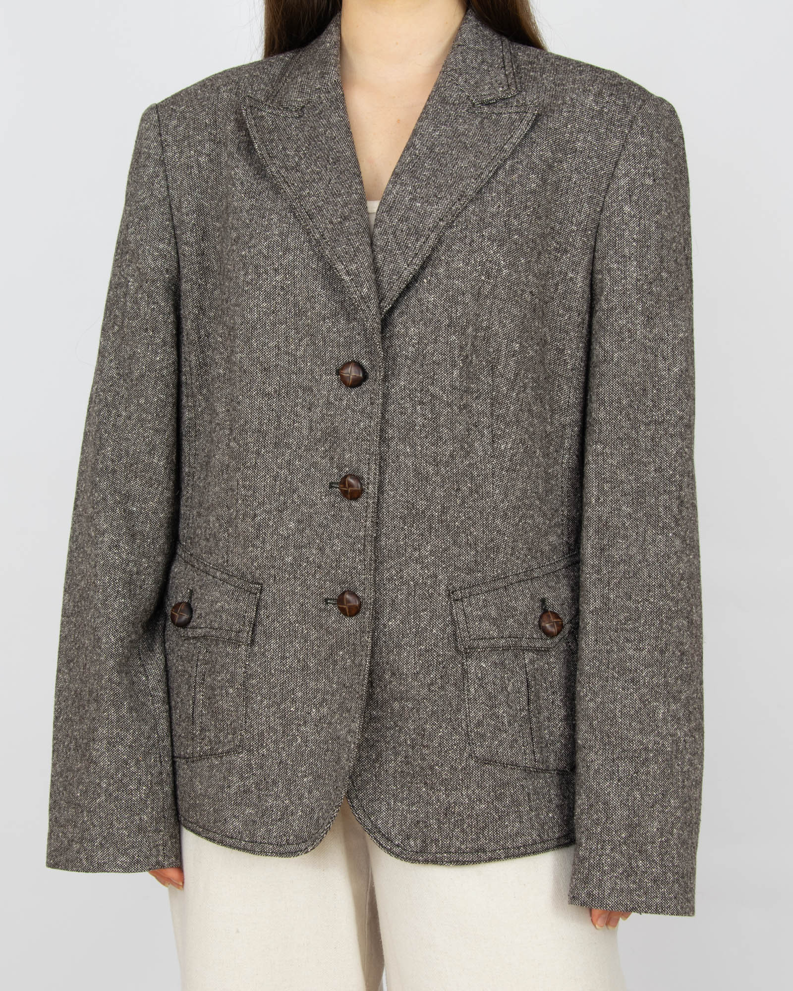 Brązowa wełniana marynarka z jedwabiem TAIFUN - L